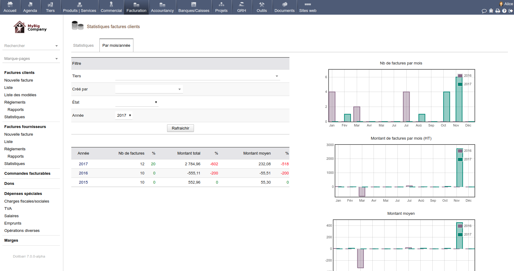 Les autres fonctionnalités que vous pouvez activer sur l'ERP de Dolibarr incluent: la gestion des comptes bancaires, la gestion des actions commerciales, la gestion des prélèvements et virements, la gestion des notes de frais, le suivi des paiements d'impôts sociaux et fiscaux, l'agenda avec exportation ical et vcal pour l'intégration d'outils tiers, EDM / DMS (Electronic Document Management / Document Management System), et plus encore!